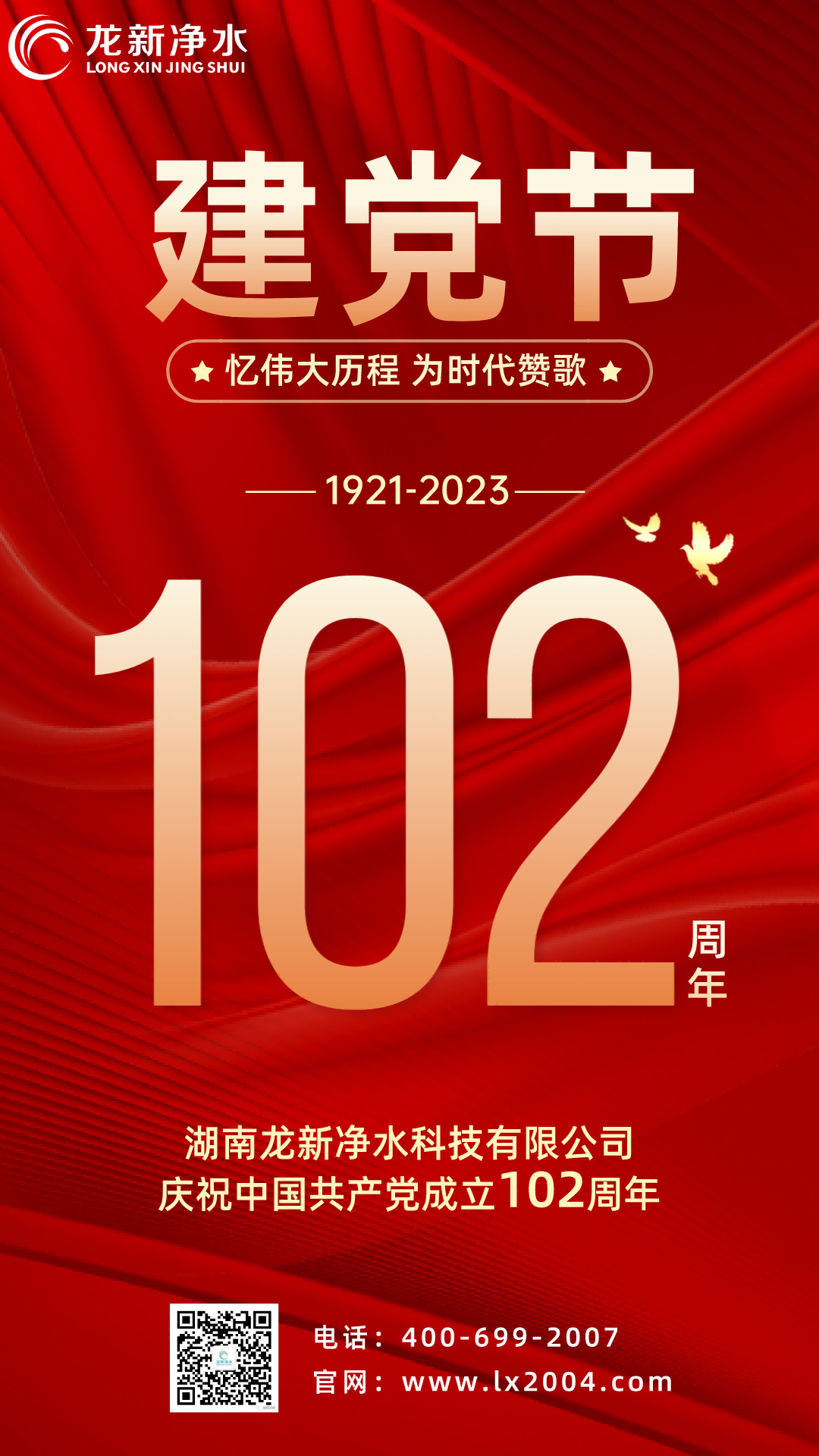 【龍新凈水】七一建黨節——熱烈慶祝中國共產黨建黨102周年