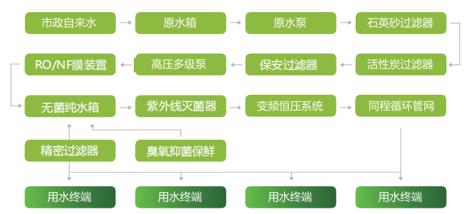 系統采用膜深度凈化技術,去除水中的病菌、病毒、重金屬、有機毒害物和有毒化合物,直飲水優質潔凈。