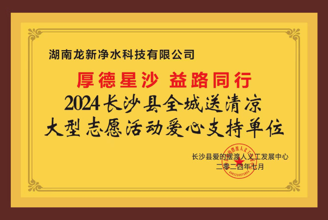 龍新凈水作為一家水處理整體解決方案智造商,積極響應(yīng)“厚德星沙,益路同行”全城送清涼大型志愿活動,充分發(fā)揮水處理專業(yè)特長優(yōu)勢,向此次活動捐贈了一批優(yōu)質(zhì)的礦泉水。當他們接過清涼的礦泉水,臉上露出的那一抹欣慰的笑容,讓我們深深感受到,這一份小小的心意,帶來的是大大的溫暖。