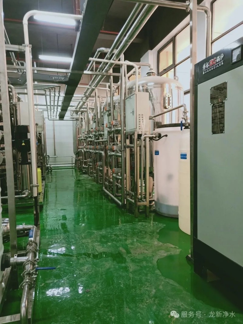 龍新凈水專業為本項目提供的純水凈化制備系統主要工藝涉及初濾系統、一級反滲透、一級水儲罐(用于產品試壓)、二級反滲透、二級水儲罐、EDI凈化設備、三級水儲罐。它不僅工藝成熟、操作方便、產水水質高,而且安全:生產用水穩定,凈化后的水不被輸送管道污染。B級水在管道輸送過程中,選用輸送管道材質不低于不銹鋼SUS304材質,A級水在輸送過程中,選用輸送管道材質不低于不銹鋼SUS316材質。